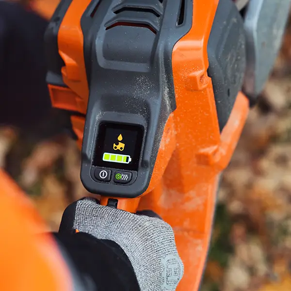 Husqvarna 550i XP er udstyret med et brugervenligt, digitalt display, der giver overblik over batteristatus, driftstilstand og eventuelle advarsler. Det sikrer fuld kontrol under arbejdet og gør det nemt at optimere ydeevnen.